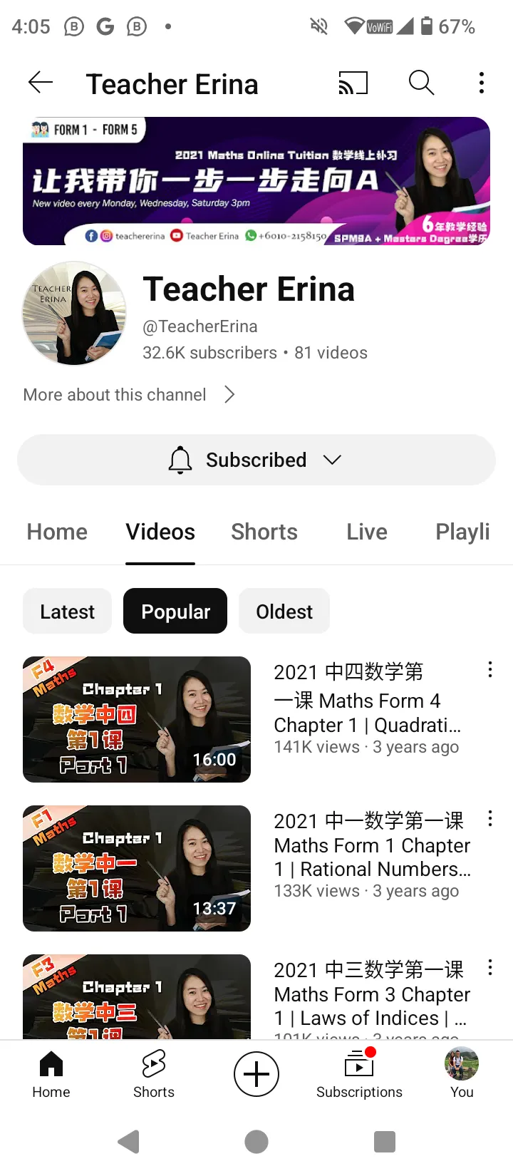 Teacher Erina 的幽默教学风格及耐心的性格, 使她成为YouTube华人圈#Top1的数学补习老师!😎