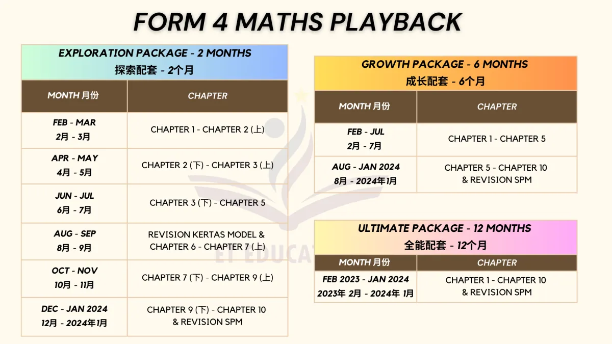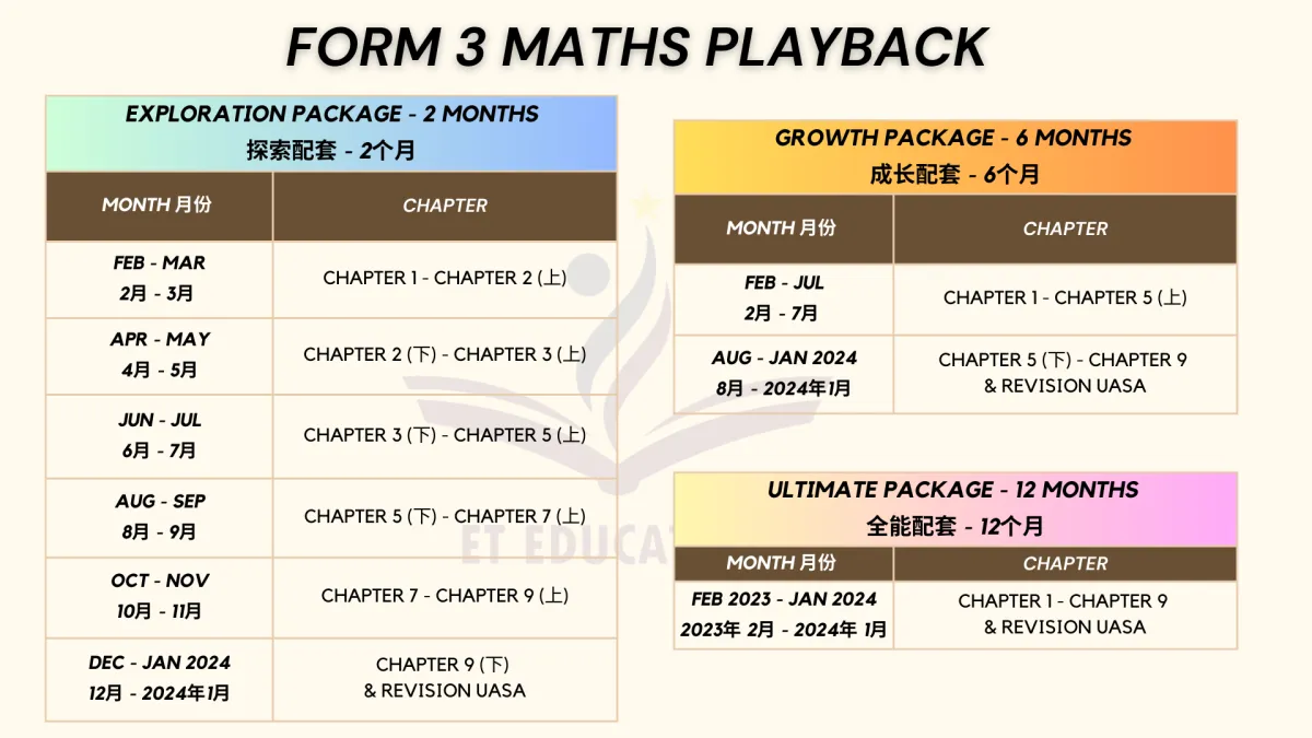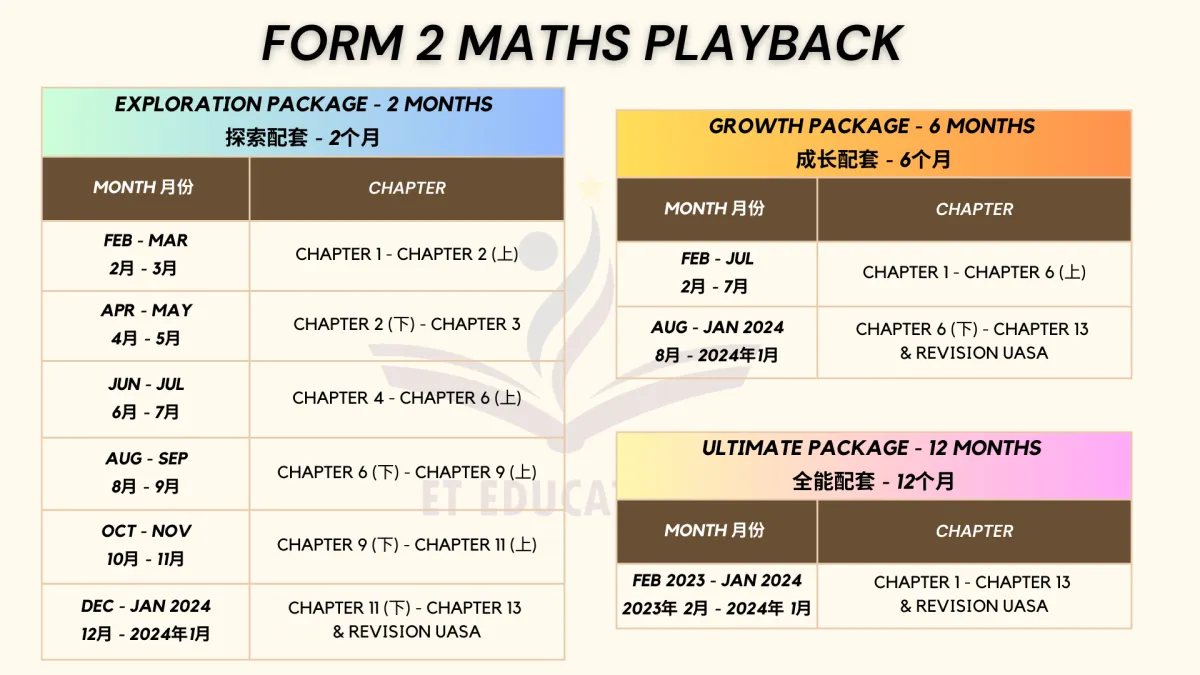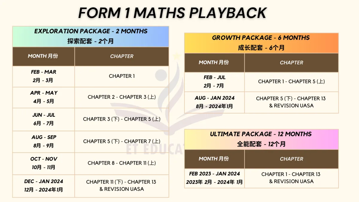 每个Form涵盖了所有重要数学知识点,确保每个年级的学生都能找到适合自己的课程。